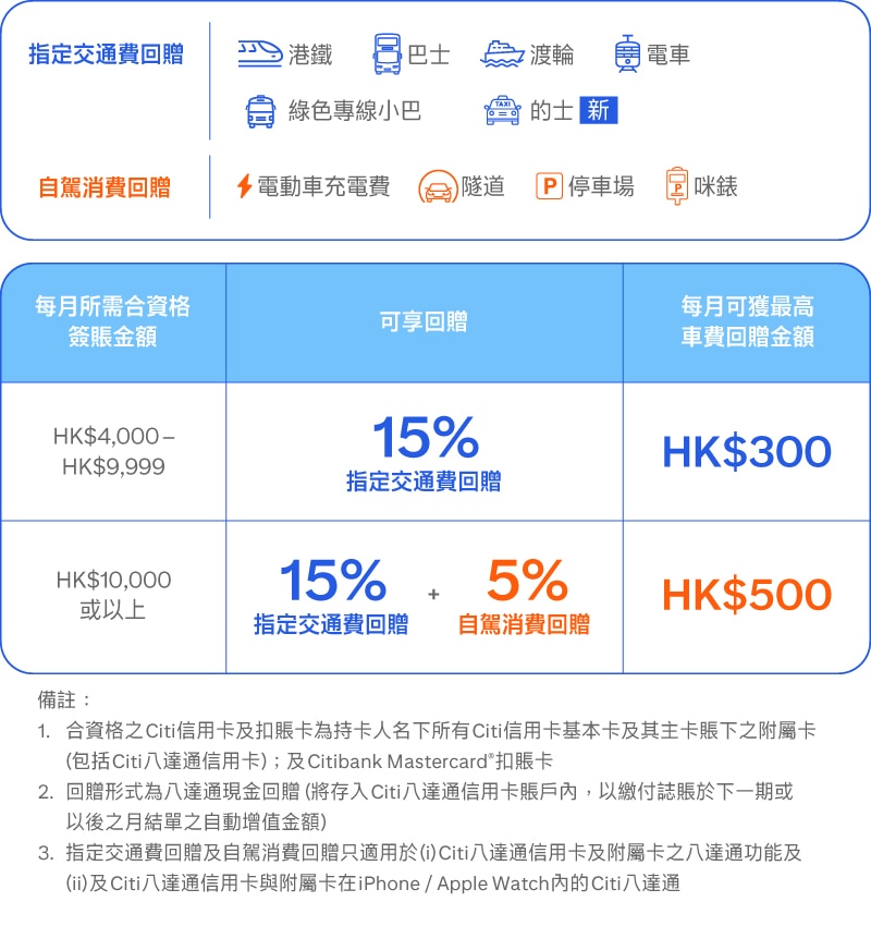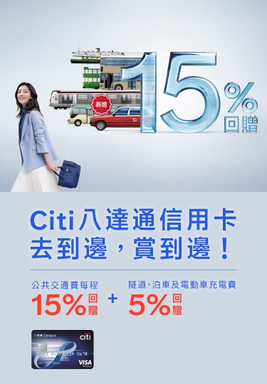 - Citi八達通信用卡八達通現金計劃條款與細則適用。詳情請瀏citibank.hk/octopus。