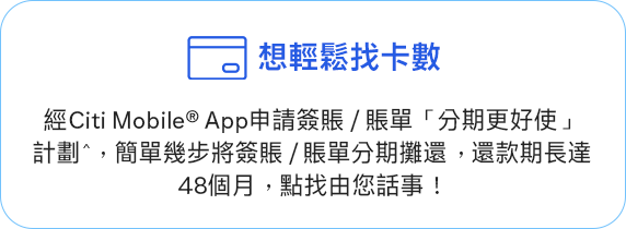 ^ Citi信用卡賬單「分期更好使」計劃及Citi信用卡簽賬「分期更好使」計劃的分期付款